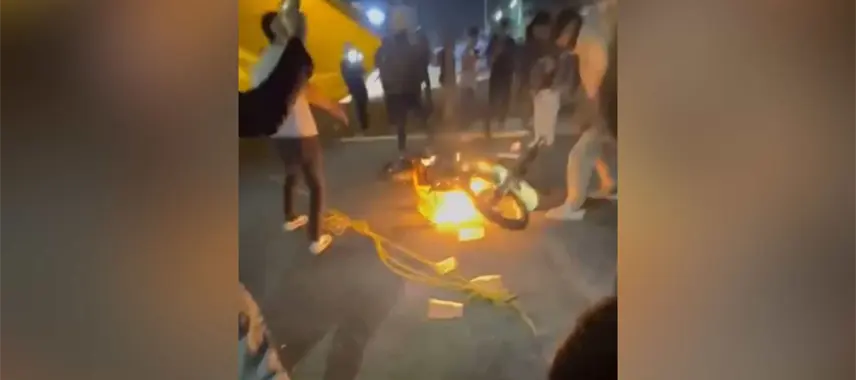 De acuerdo con testigos, algunas personas derribaron las vallas de seguridad y arremetieron contra el escenario, provocando destrozos e incendiando tanto la carpa principal como la unidad que sería sorteada.