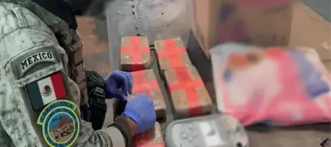 En el lugar, elementos de la Guardia Nacional y Ejército Mexicano inspeccionaron un tractocamión que transportaba cajas con bolsas de jabón en polvo, procedente de Hermosillo y con destino a Mexicali, donde, tras la exploración, se detuvieron a dos personas, a quienes les aseguraron 250 kilos de metanfetamina y 5 kilos de fentanilo.