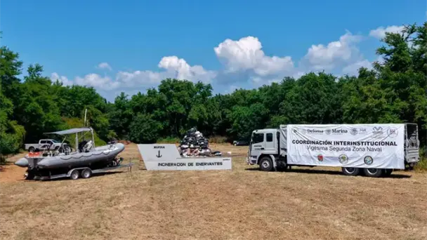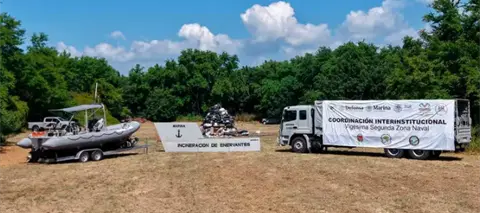 Lo incinerado corresponde a 939 kilos 811 gramos 400 miligramos de clorhidrato de cocaína, 16 kilos 197 gramos 100 miligramos de clorhidrato de metanfetamina, tres gramos 770 miligramos de cocaína, 871 gramos 750 miligramos de cocaína base, una tonelada 134 kilos 336 gramos 100 miligramos de marihuana y cuatro gramos 500 miligramos de metanfetamina, haciendo un total de dos toneladas 91 kilos 224 gramos 620 miligramos de narcóticos, así como objetos del delito y equipo táctico.