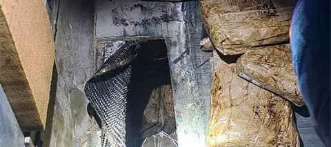 Al inspeccionar la unidad se detectó que tenía modificaciones en su estructura, por lo que el personal de Seguridad realizó una revisión donde hallaron un compartimento oculto que contenía los 50 paquetes de droga.