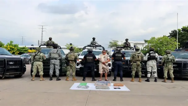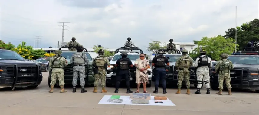 La Fuerza Interinstitucional de Reacción Táctica (FIRT) Olmeca detuvo a Guadalupe "N" alias "El Lucha", por delitos contra la salud y portación de arma de fuego en su modalidad de narcomenudeo, en Centro.