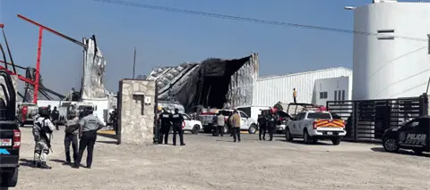 Un incendio consumió la planta procesadora de frutas y verduras "Los Mirasoles" S.A. de C.V. que se ubica sobre la carretera estatal número 4 en la comunidad de Villa Juárez, del municipio de Asientos, Aguascalientes.