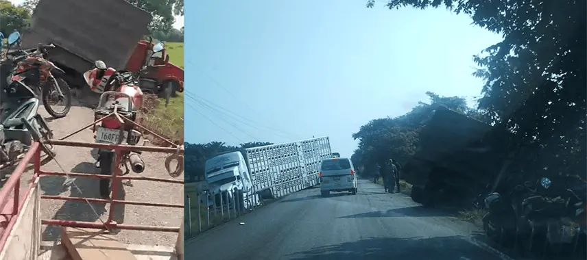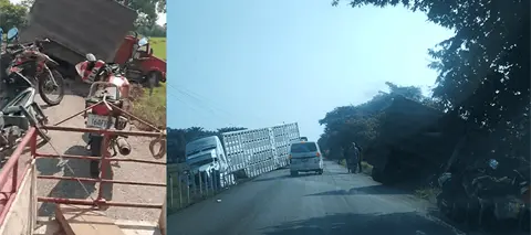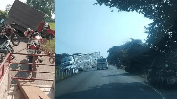 Incidente de góndola y "panzona" interrumpe por un par de horas carretera Jalapa-Chichonal