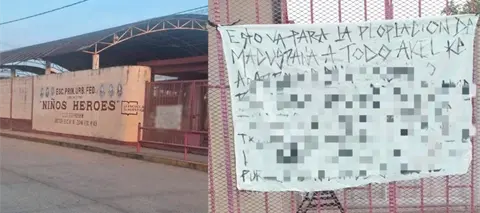 Tras el aviso de las autoridades escolares, los elementos de la policía municipal acudieron al lugar para retirar la manta y ponerla a disposición de la Fiscalía para su análisis e investigación.