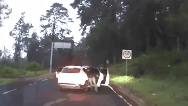 Al percatarse del intento de asalto, que quedó grabado en video, el conductor de la unidad giró bruscamente a la izquierda para evadir el vehículo y aceleró para huir del lugar.