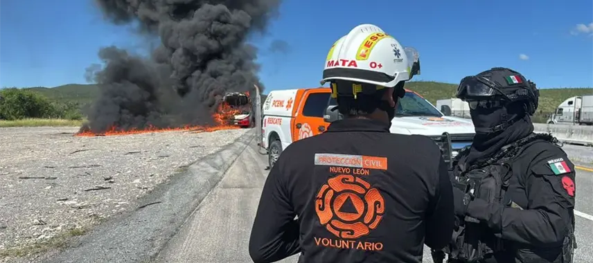 El siniestro se reportó a las 13:00 horas de este sábado y movilizó a unidades de Protección Civil de Nuevo León y Salinas Victoria, así como a elementos de Auxilio Vial, Fuerza Civil y la Guardia Nacional.