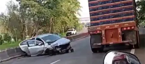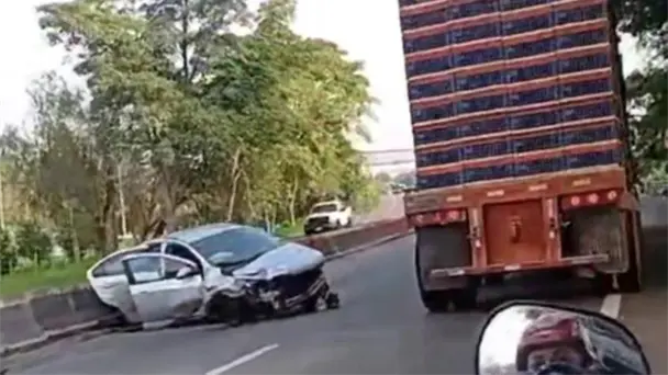El vehículo resultó con fuertes daños por el choque y fue abandonado por sus tripulantes; además, se desconoce si hubo lesionados.