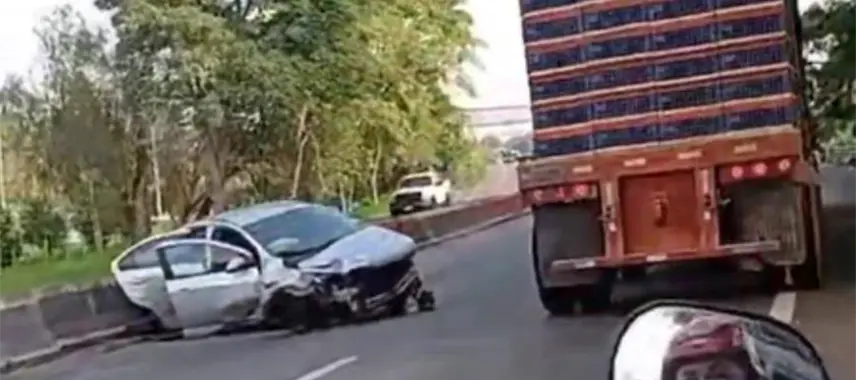 En el percance se vio involucrado un automóvil sedán color gris, el cual se impactó contra los muros de contención, quedando sobre uno de los carriles de la citada vía.