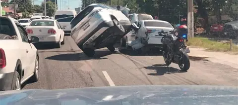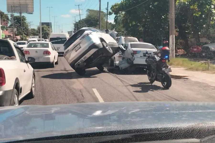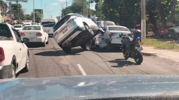 Más tarde, cerca de las 13:00 horas, el conductor de una unidad tipo SUV terminó arriba de un carro, que estaba estacionado sobre la avenida Paseo Usumacinta, pasando la Fuente Maya con dirección a Guayabal, lo que afectó a un tercer automóvil.