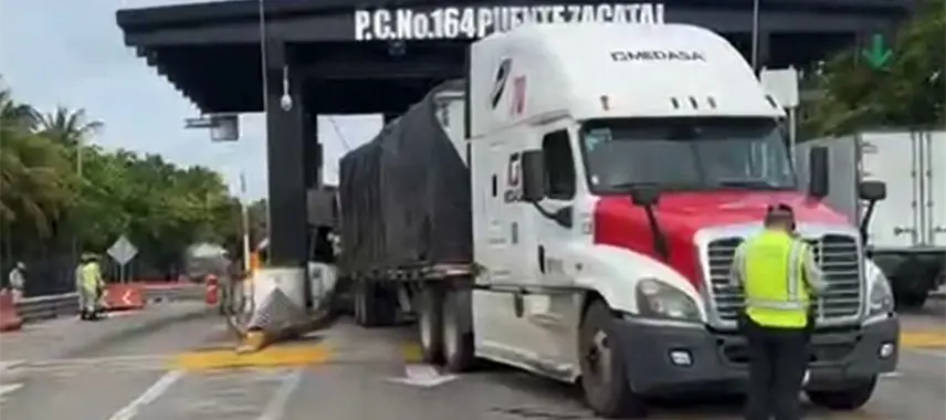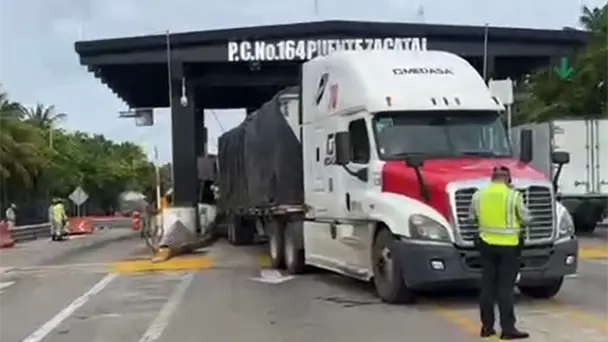Tráiler derriba caseta de cobro en puente Zacatal en Ciudad del Carmen
