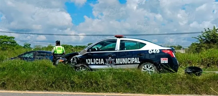 Este miércoles, un tráiler provocó el accidente de una patrulla de la Policía Municipal de Emiliano Zapata, en la carretera Macuspana-Villahermosa, a la altura del Poblado Dos Montes, en Centro.