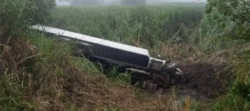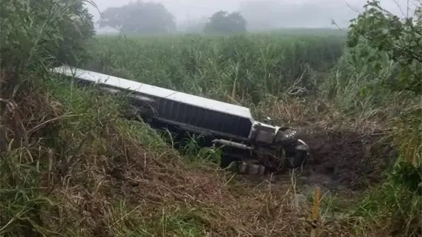En el siniestro se vio involucrado el conductor de un tráiler, el cual, de acuerdo con testigos, perdió el control de la pesada unidad y se salió de la cinta asfáltica, quedando sobre unos montazales.