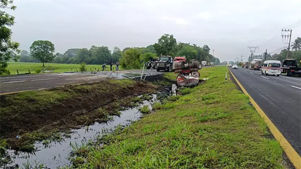 Vuelca pipa con combustóleo en la carretera Villahermosa –Cárdenas
