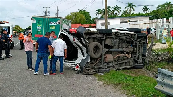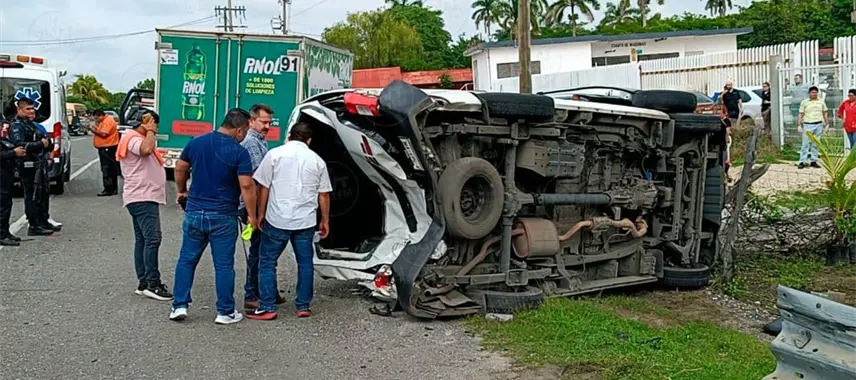 Nueve personas resultaron heridas luego de que una combi del transporte público, de la ruta Paso Real, chocara con una camioneta de carga en la vía Villahermosa- Frontera a la altura del kilómetro 6+500.