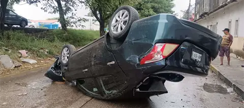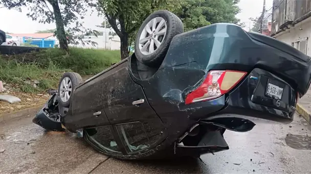 Este lunes un vehículo terminó volcado sobre la calle Alfonso Vicents Saldivar, a la altura de la colonia La Manga I.