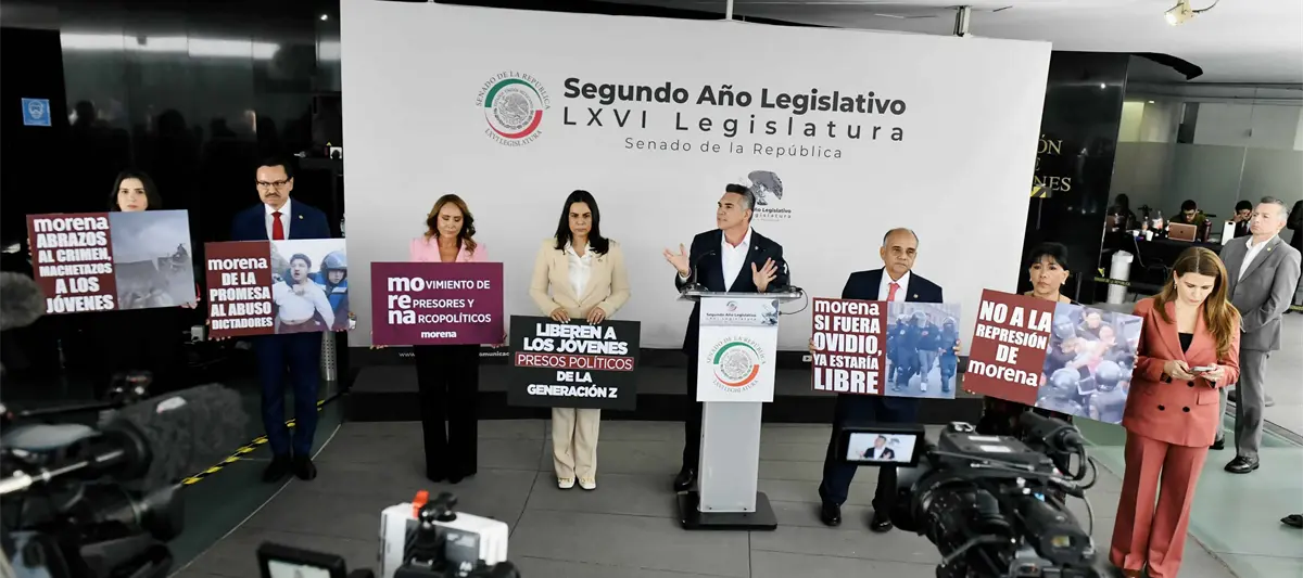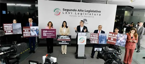 "Exigimos que se liberen inmediatamente a los jóvenes que son presos políticos de este narcoestado de Morena. No podemos permitir que eso suceda en nuestro país. No podemos permitir que este gobierno indolente, intolerante, intransigente, violente a las y los jóvenes.