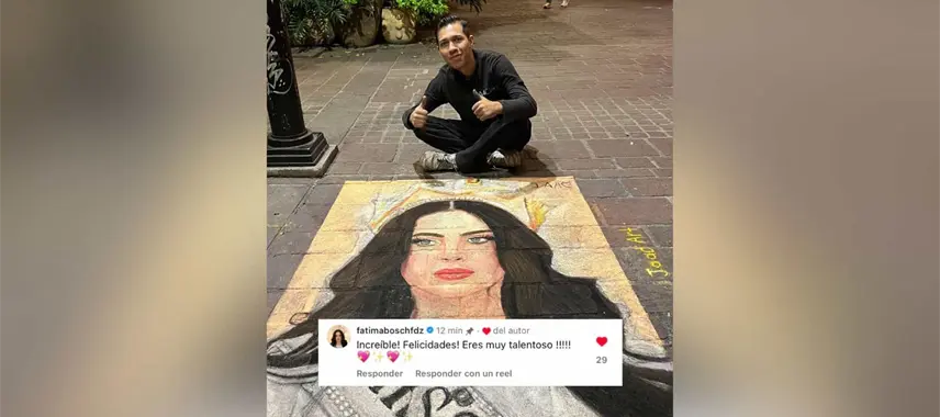 El artista urbano, Jesús Álvarez, mejor conocido como Jaac Art, realizó una pintura efímera de la Miss Universe México 2025, Fátima Bosch Fernández.