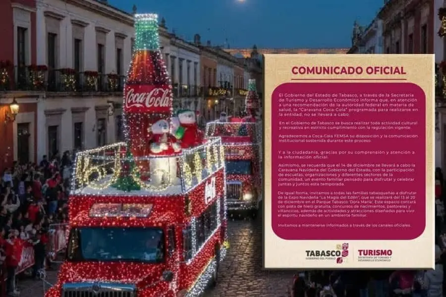 La Secretaría de Turismo y Desarrollo Económico informó que se canceló la Caravana Coca Cola en Tabasco, por una recomendación de la autoridad federal en materia de salud.
