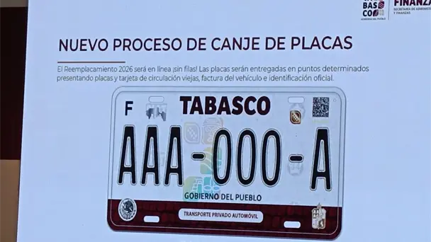 "El canje de placas se hace en toda la República, en todas las entidades federativas con el objetivo de tener un mejor control vehicular, así nos actualizamos. En Tabasco únicamente estarías pagando la placa, como si fuera el refrendo vehicular, la diferencia es que vamos a entregar placa, tarjeta de circulación y calcomanía. Además, que en esta ocasión será un proceso histórico, nada de filas, todo a través de nuestro portal Llave Tabasco", comentó.