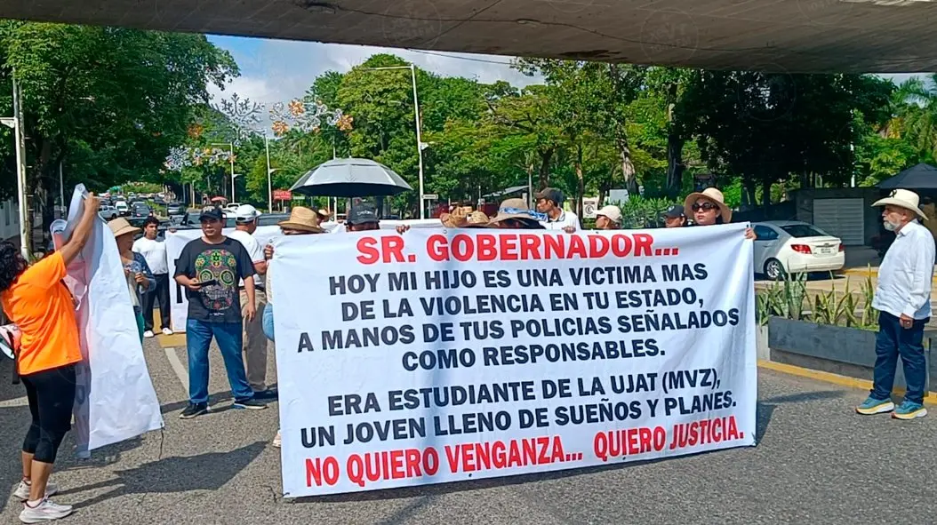 "Y si aquí en Tabasco, con este pronunciamiento el gobernador no toma cartas en el asunto y le da instrucciones al secretario de Seguridad y a la Fiscalía General del Estado que saquen las manos de esa carpeta de investigación, donde fue privado de la vida por elementos de la SSPC mi hijo, voy a tener que irme a la Ciudad de México y postrarme en la asta bandera del Zócalo hasta que sea escuchado, y si ahí tampoco soy escuchado voy a tener que ir a las embajadas.