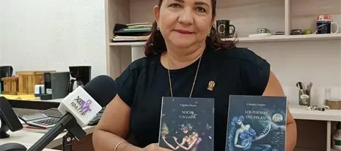 "El primero se llama Los poemas del Diván y se imprimió justo hace 1 año en el Festival de la Primavera Poética. Fue su primera presentación en Perú. En Perú me invitó precisamente el organizador de este festival es la Fundación Iberoamericana para las Artes que su presidente es Harold Alba. Entonces, Harold me invita como poeta y me dice, Aquí vas a presentar el libro, porque él es mi editor y mi impresor. Entonces, me invita, me entrega mi libro y ahí hago la presentación de lo que es los poemas del Diván. Y este año para marzo me trajo ya mi libro impreso de Noche callada. Este libro ya su presentación se hace aquí en mi casa, que es la universidad, y lo hice aquí en los festejos de José Carlos Becerra y ahorita vuelvo a viajar a Perú como invitada al Festival Internacional de la Primavera Poética que va en su edición número 12 y voy como poeta otra vez a presentar allá en Perú mi tercer libro que se llama Donde no estás", expuso.