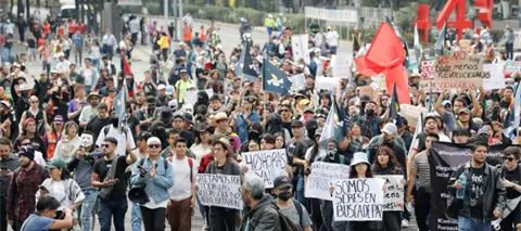 Pese a que la manifestación tenía como propósito exigir un país más justo, transparente, democrático, libre de corrupción y de violencia, durante el trayecto los participantes, en su mayoría jóvenes, gritaron consignas en apoyo a la jornada laboral de 40 horas, a favor de Palestina y contra el Gobierno Federal.