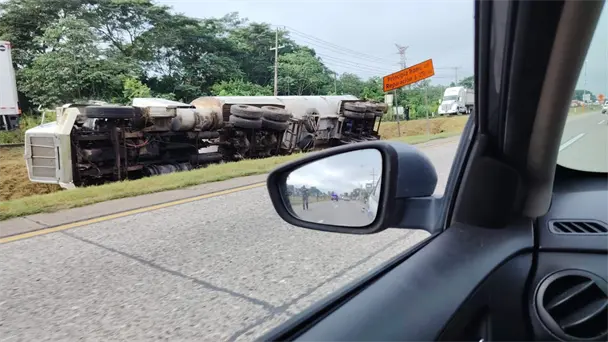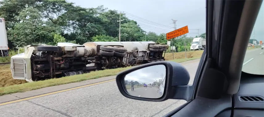 Tras persecución, pipa vuelca en la Cárdenas-Coatzacoalcos