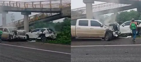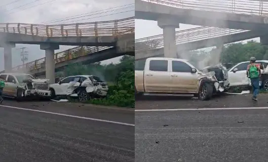 Durante el mediodía de este jueves se registró un aparatoso choque entre dos vehículos particulares en la carretera Villahermosa – Frontera a la altura de la comunidad Simón Sarlat, Centla.