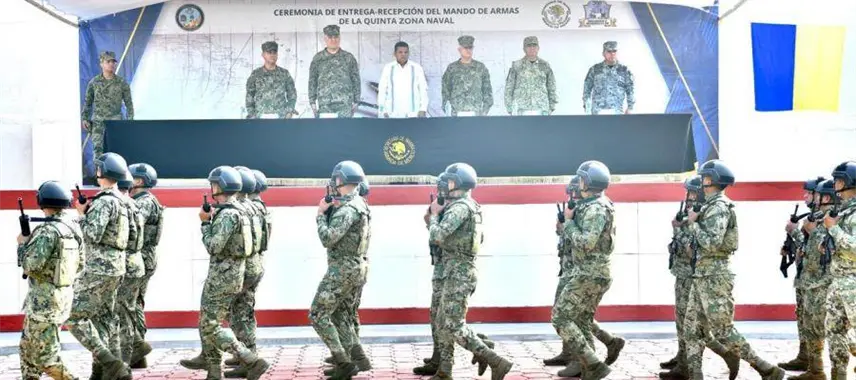 La mañana de este jueves, se llevó a cabo la Ceremonia de entrega-recepción de mando de armas de la Quinta Zona Naval en el puerto de Frontera, Tabasco.