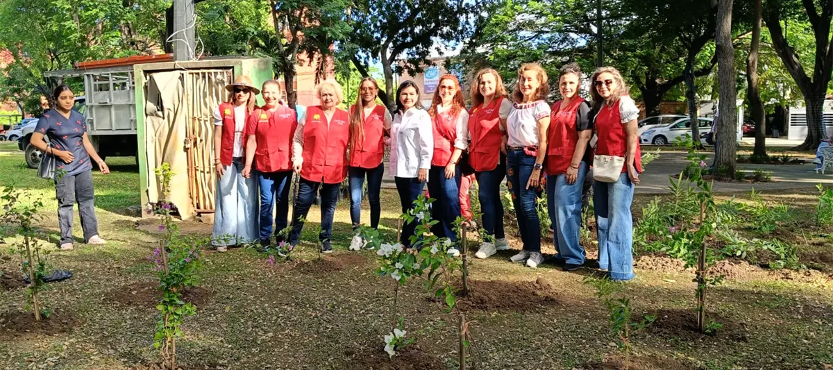 En la campaña de reforestación, la alcaldesa y las embajadoras plantaron bugambilias y se comprometieron a cuidar su crecimiento.