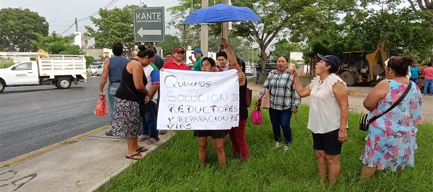 Con protesta exigen reductores de velocidad y reparación de calles habitantes del Ejido Pino Suárez