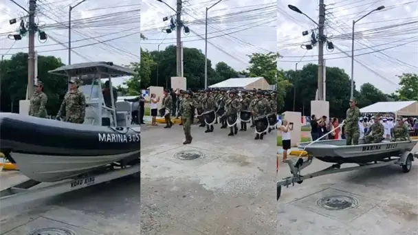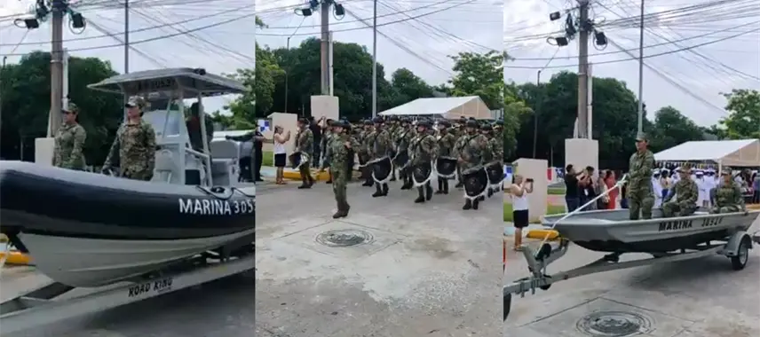 En el desfile, personal de la Marina, adscrito a la Quinta Zona Naval, mostraron equipos y uniformes que usan en sus labores durante el servicio que prestan a la nación.