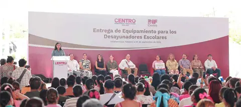 Este martes, el Ayuntamiento de Centro entregó equipamiento para los desayunadores escolares de primarias y jardines de niños de 154 localidades del municipio.