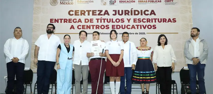 Durante su visita a Tabasco, el secretario de Educación Pública, Mario Delgado Carrillo, atestiguó la entrega de 77 títulos y escrituras de propiedad a planteles educativos de la entidad.