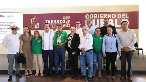 El gobernador de Tabasco, Javier May Rodríguez, entregó este jueves apoyos a la Comisión Nacional Forestal (CONAFOR), para la implementación de plantaciones forestales comerciales.