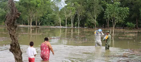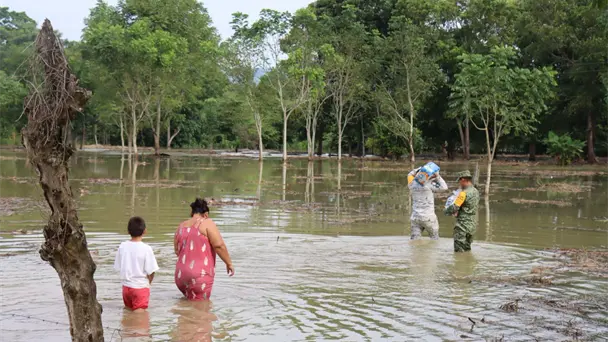 Este jueves, el Instituto de Protección Civil del Estado de Tabasco (IPCET), en coordinación con la Secretaría de la Defensa Nacional (Sedena) y la Guardia Nacional (GN), realizó la entrega de despensas y diversos insumos a los habitantes de las comunidades afectadas por las lluvias generadas por el Frente Frío No. 19.