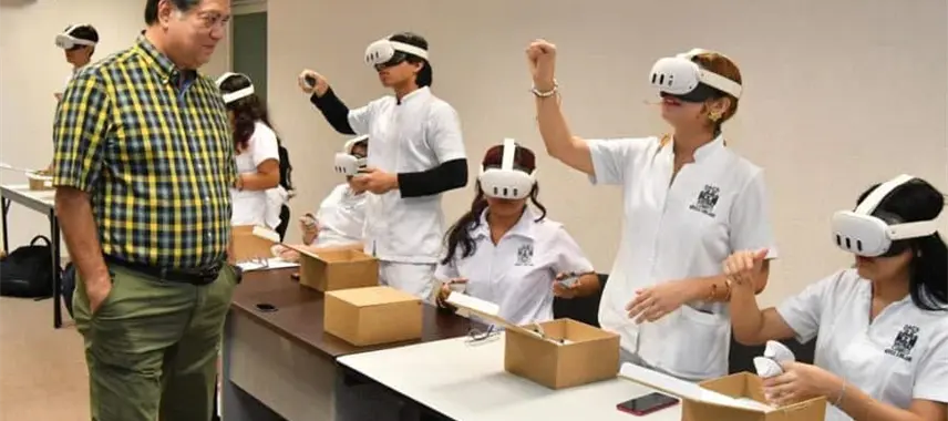 Se detalló que se cuenta con 30 dispositivos de realidad virtual y realidad aumentada que integran conexión a internet y plataformas de aprendizaje digital que complementarán la formación de los alumnos que cursan los programas educativos en Médico Cirujano, Enfermería, Psicología, Nutrición y Cirujano Dentista.