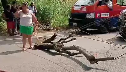 Poco antes de la 1 de la tarde los ciudadanos colocaron troncos y palos para cerrar la circulación.