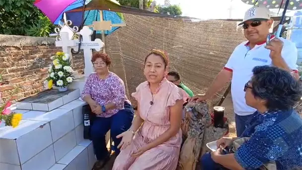"Mis hermanas, mis sobrinas, somos como tres generaciones o cuatro ya, solo somos la familia de mi mamá y de mi papá, -¿desde hace cuántos años tienen esta tradición? - Mi papá tiene 48 años de muerto y a partir de que él falleció, pues mi mamá nos inculcó esa tradición de venir cada en esas fechas como visita o tradición a estar aquí con mi papá. En su casa también hacen altares. Claro, es una tradición que ha venido de hecho desde antes que muriera mi papá, fue algo que él con mi mamá nos enseñaron y desde entonces se hacen los tamales, hacemos los altares, ponemos las velitas, las flores, todo lo que implica todo lo significativo en un altar hasta donde ellos nos enseñaron y hemos ido aprendiendo", indicó.