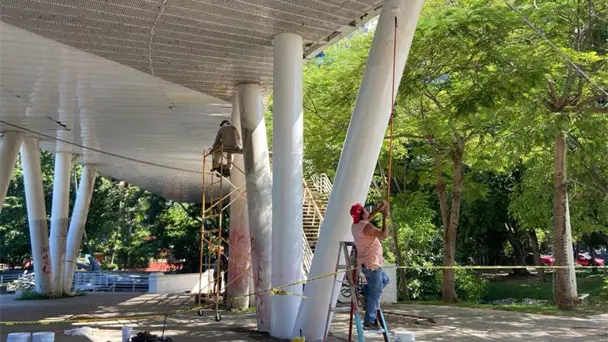 La presidenta municipal de Centro, Yolanda Osuna Huerta, informó que se realizarán trabajos de mantenimiento a Plaza de Armas y el Museo Elevado de Villahermosa (Musevi).