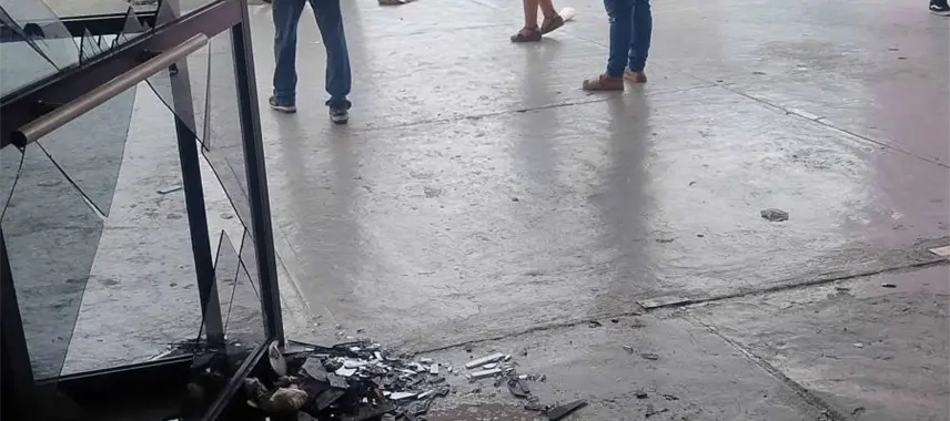 Rompieron el vidrio de las puertas de acceso