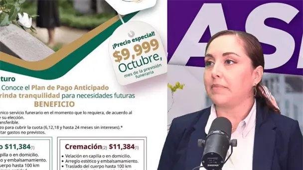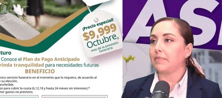 "Así como tenemos el hábito del mes del testamento que es en el mes de septiembre, el IMSS quiere generar la cultura y conciencia en toda la población en que en el mes de octubre se nombre octubre, mes de la previsión funeraria. ¿Para qué? Para que nosotros generemos esa cultura en nuestros hogares. En el mes de octubre el IMSS está dando el precio especial de $9,999 pesos, ya sea en la contratación de un plan preventivo de cremación o un plan preventivo de inhumación. Este pago lo pueden hacer en una sola exhibición o como el cliente lo prefiera a seis mensualidades y hasta 24 (meses). No les va a generar ningún interés, o sea, que prácticamente pagaríamos 417 pesos mensuales. Está bastante flexible", dijo.