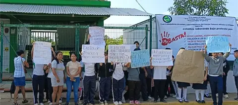 Alumnos del CECyTE plantel 19 del fraccionamiento Villa El Cielo, de Centro, se manifestaron afuera del instituto educativo alegando diversas inconformidades contra la nueva directora.