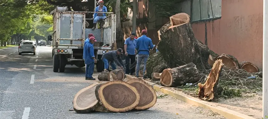 El ayuntamiento de Centro rechazó que estén llevando a cabo una campaña de tala de árboles luego de que se denunciara el derribo de uno en Paseo Usumacinta, a la altura de la salida de la colonia El Espejo II.