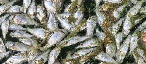En una de las grabaciones, un hombre comenta que la mortandad podría ser a causa de la contaminación, pues observa que ni los cocodrilos se comen a los peces muertos.