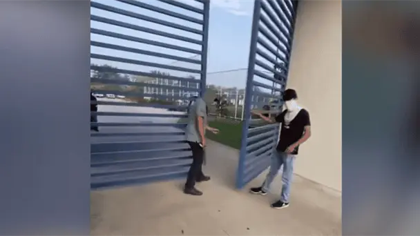 Entre tanto, trabajadores abrieron el portón a docentes y alumnos, pero los manifestantes rápidamente les pidieron que cerraran.