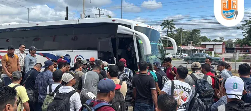 91 trabajadores originarios de Paraíso emprendieron su viaje con rumbo a Nuevo León, donde trabajarán para la empresa Techint Ingeniería y Construcción.