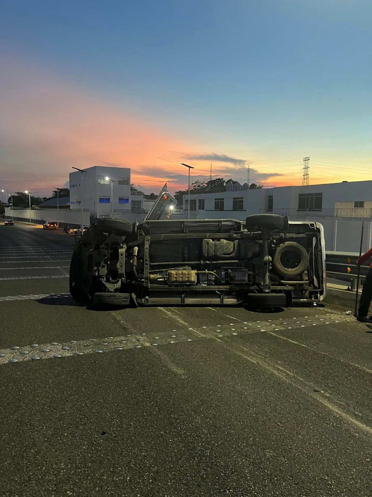 Vuelca camioneta sobre distribuidor vial de Guayabal