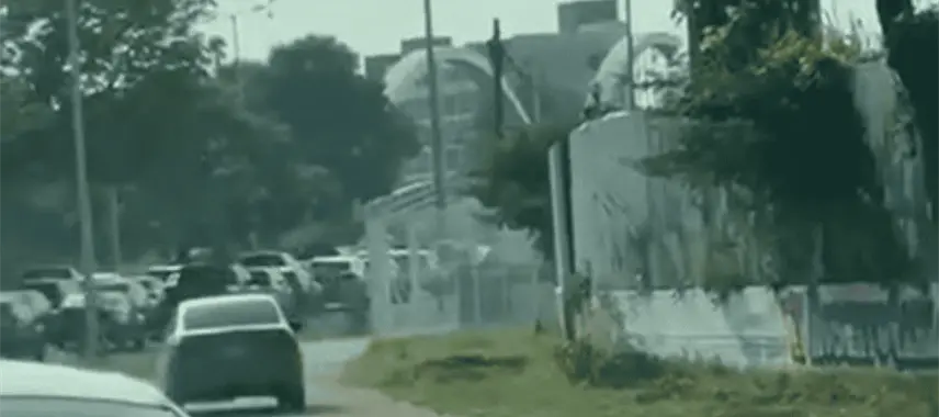 Antes de terminar la grabación, se observa que el vehículo se encuentra a un peatón, quien tiene que moverse para evitar ser arrollado, ya que el automovilista circulaba a alta velocidad.
