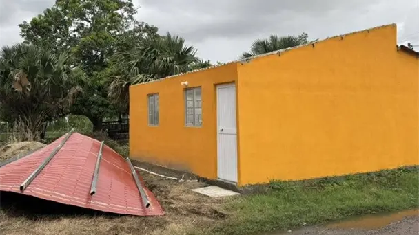 Fuertes vientos del frente frío 13 derriban techo de vivienda del Bienestar en Paraíso
